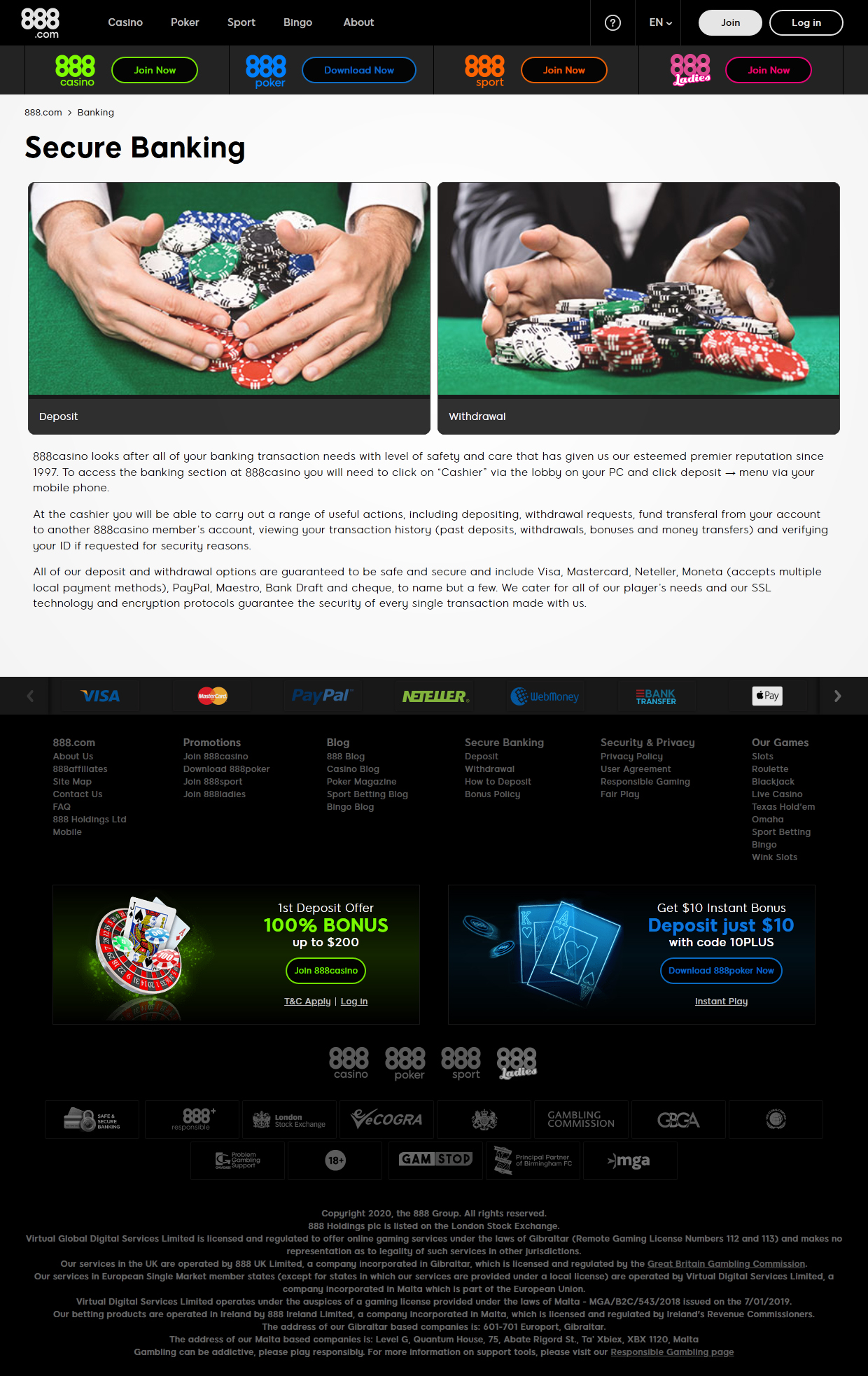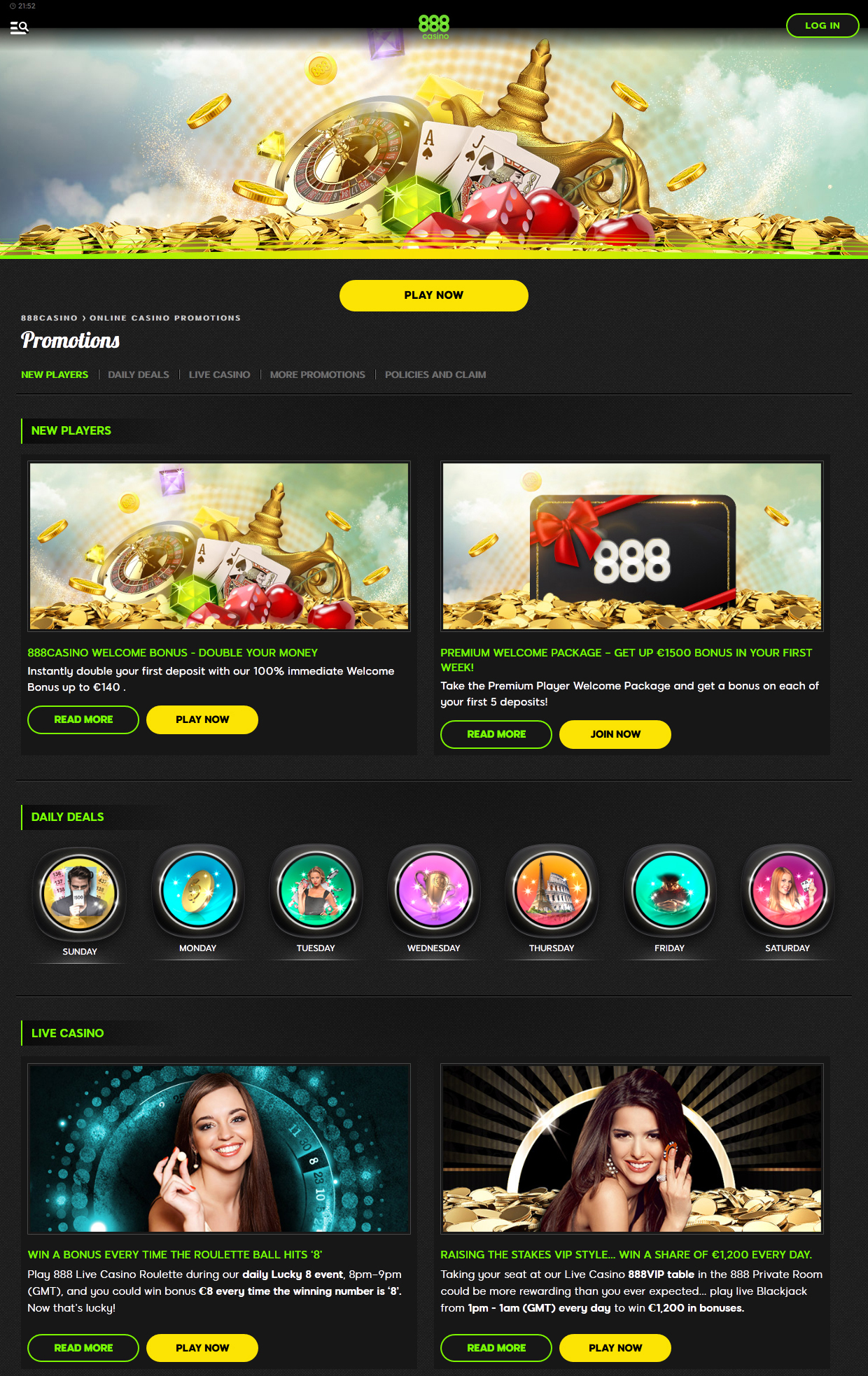 as promoções em 888 atendem bem a todas as categorias de jogadores. o primeiro bônus que todo usuário recebe no registro é um chip grátis de us € 20 (sem necessidade de depósito) com uma baixa jogada de x30. em seguida, vem um pacote de boas -vindas de us € 2000 que cobre dois depósitos, cada um com o x30 wr.