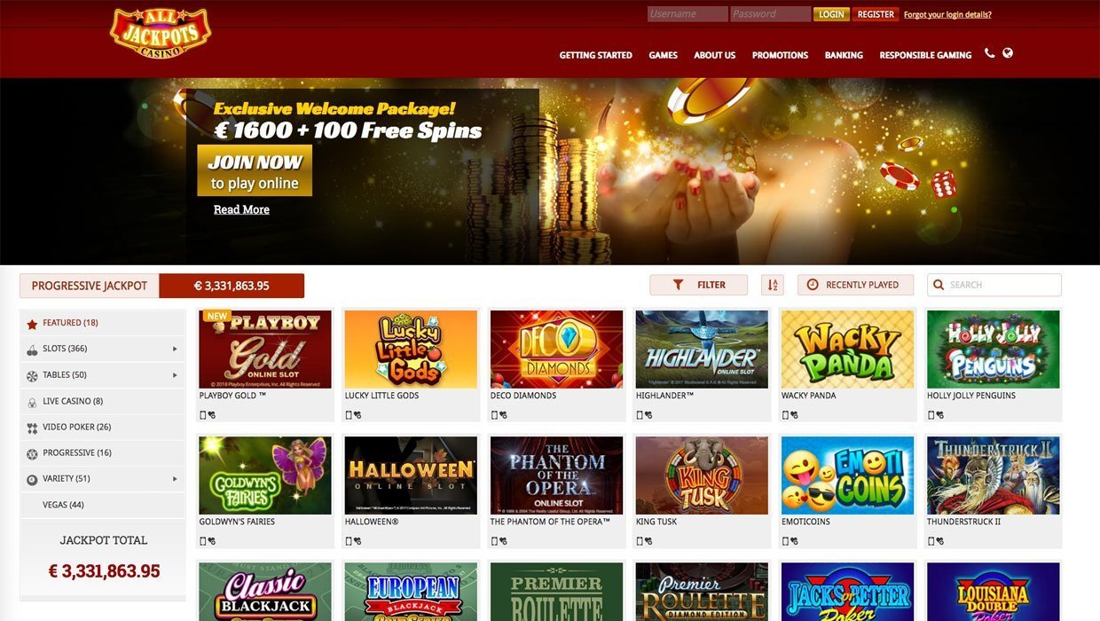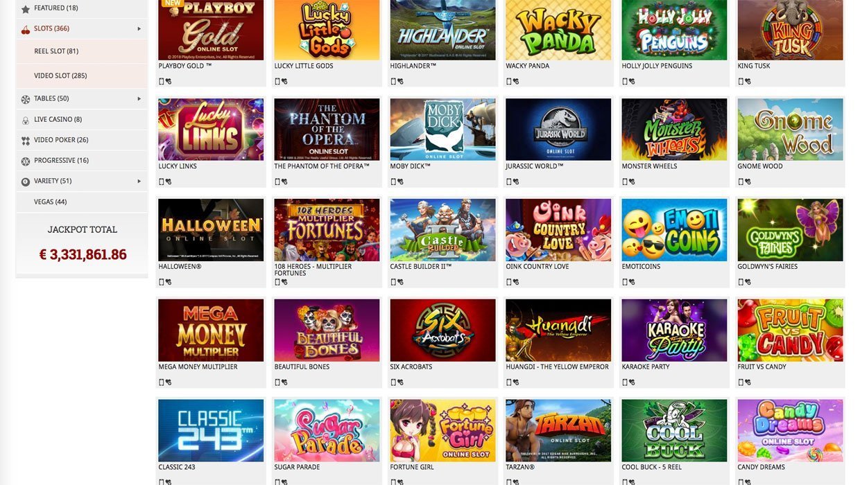 em todos os jackpots, os Pokies são agrupados em duas categorias: slots (ainda mais subdivididos no slot e no slot de vídeo) e em vegas. no momento da redação deste artigo, o cassino era o lar de mais de 350 Pokies da microgaming que estão localizados na página de slots e cerca de 50 Pokies da net entertainment, publicados na seção de vegas misturados com os títulos da microgaming - uma divisão muito incomum e inexplicável de Pokies. passando um ponteiro de mouse sobre (ou tocando) um ícone de pokie, você verá que o botão play for fun aparece em alguns deles; isso significa que esses Pokies não requerem registro. mas há um grupo de Pokies, tudo da net entertainment, que os jogadores podem acessar apenas ao se inscrever em todos os jackpots. se visitar o cassino via celular, você precisa ser um usuário registrado para jogar qualquer jogo.