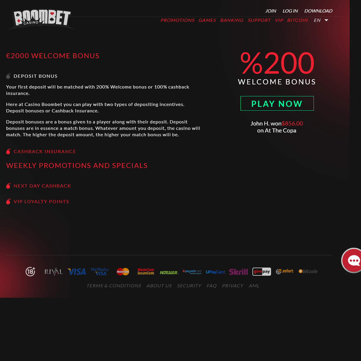 os recém -chegados receberão seu primeiro depósito com um valor de bônus de 200%. além disso, um jogador terá a opção de receber o bônus de boas -vindas acima ou reivindicar um reembolso de 100% de seguro. se o último for reivindicado, um jogador será reembolsado o valor total do valor depositado, caso tenha sido preso nos jogos de cassino boombet. o reembolso precisa ser apostado uma vez antes de ser retirado.