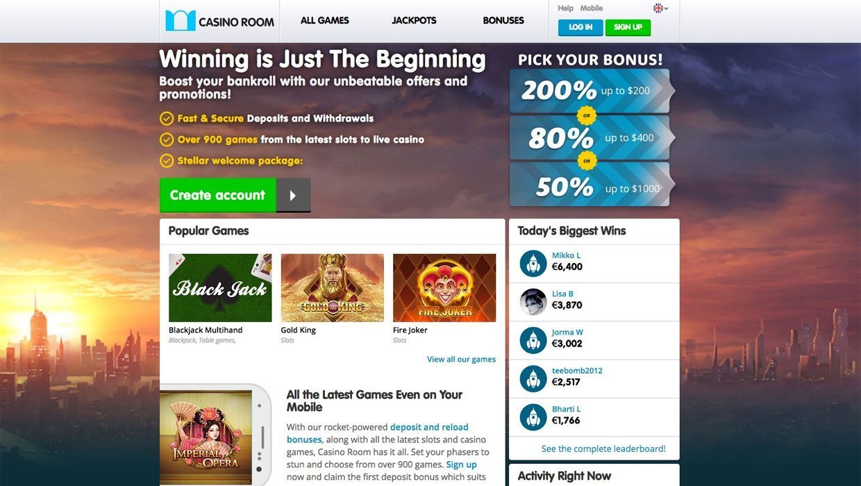 o casino room é um cassino on-line de várias plataformas, com mais de 900 jogos da net entertainment, betsoft, yggdrasil, microgaming, aristocrat e alguns outros fornecedores conhecidos. o cassino tem um programa de bônus criativo na forma de um sistema de missões em que você viaja pelo universo, ganha conquistas e obtém pontos de experiência. os Pokies são divididos por categorias temáticas, tornando sua escolha ainda mais fácil e inteligente. este é o cassino para os verdadeiros conhecedores de Pokies e soluções de bônus prontas para uso. todos os jogos abrem em um navegador da web sem downloads necessários.