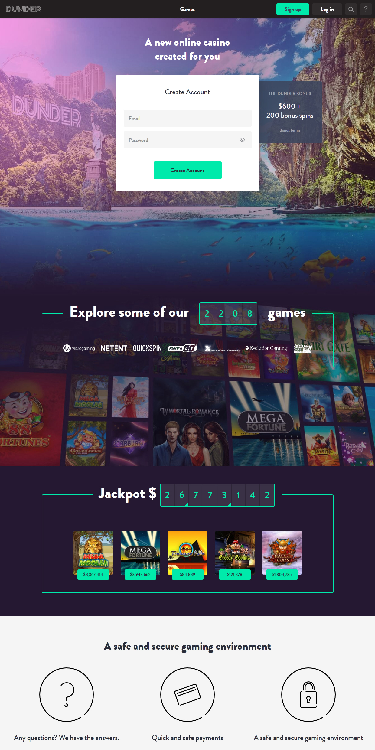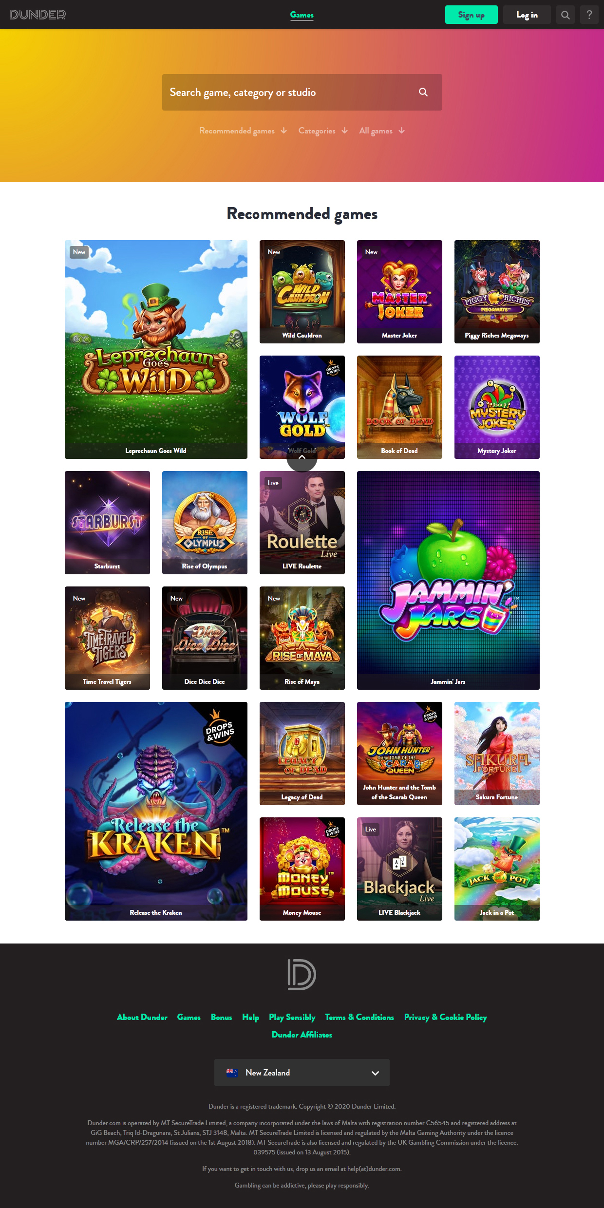 Dunder é um cassino online sem download que é acessível diretamente em um navegador da web. Possui duas licenças de jogo emitidas pela Malta Gaming Authority e PT Gambling Commission, então a Dunder é um site totalmente legal e licenciado para jogar. No caso de quaisquer problemas ou consultas, um jogador pode se conectar com o suporte por e -mail ou bate -papo ao vivo.Obtenha bônus de US € 600!