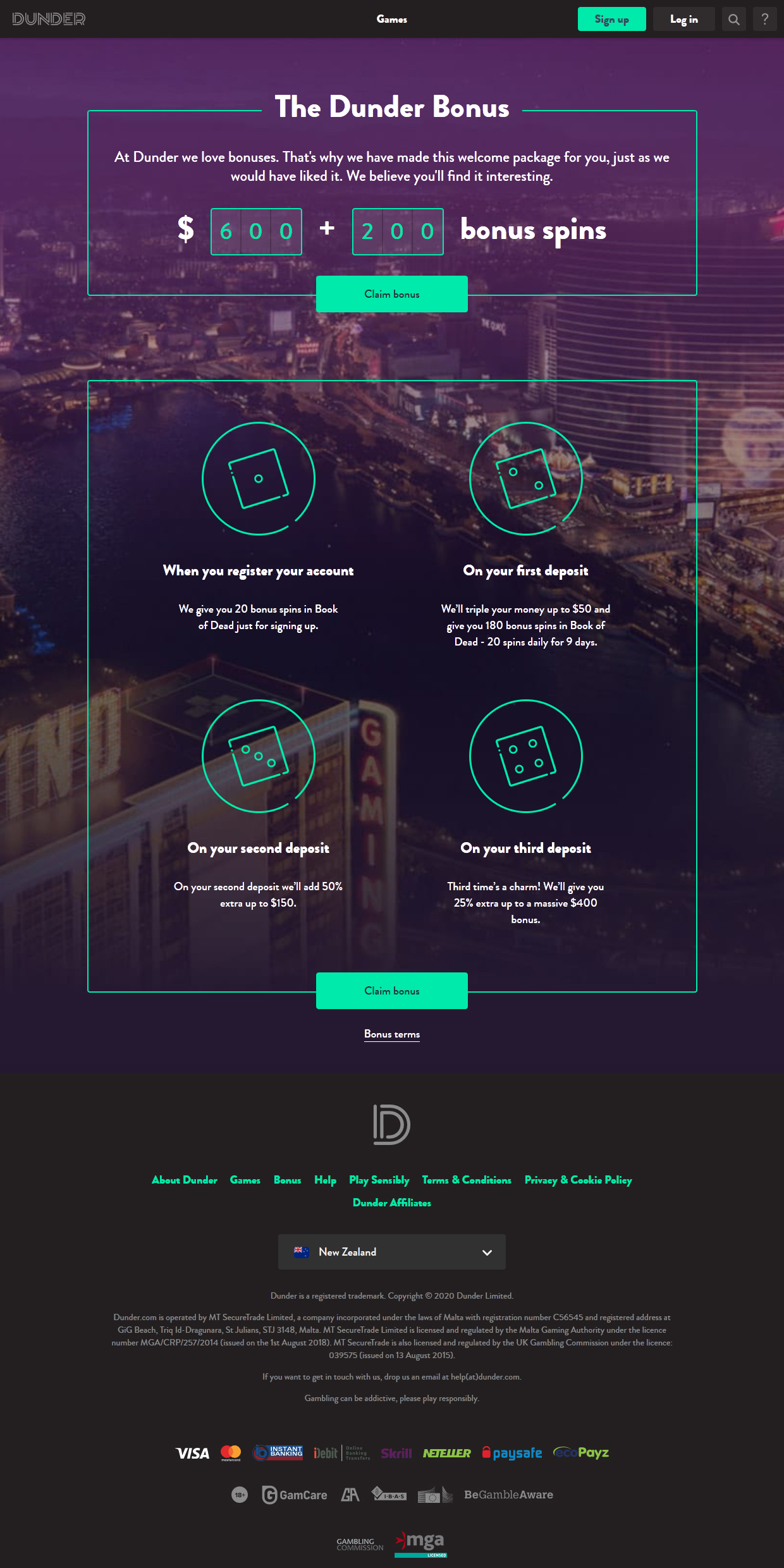 o pacote inicial do Dunder consiste em três bônus de depósito: