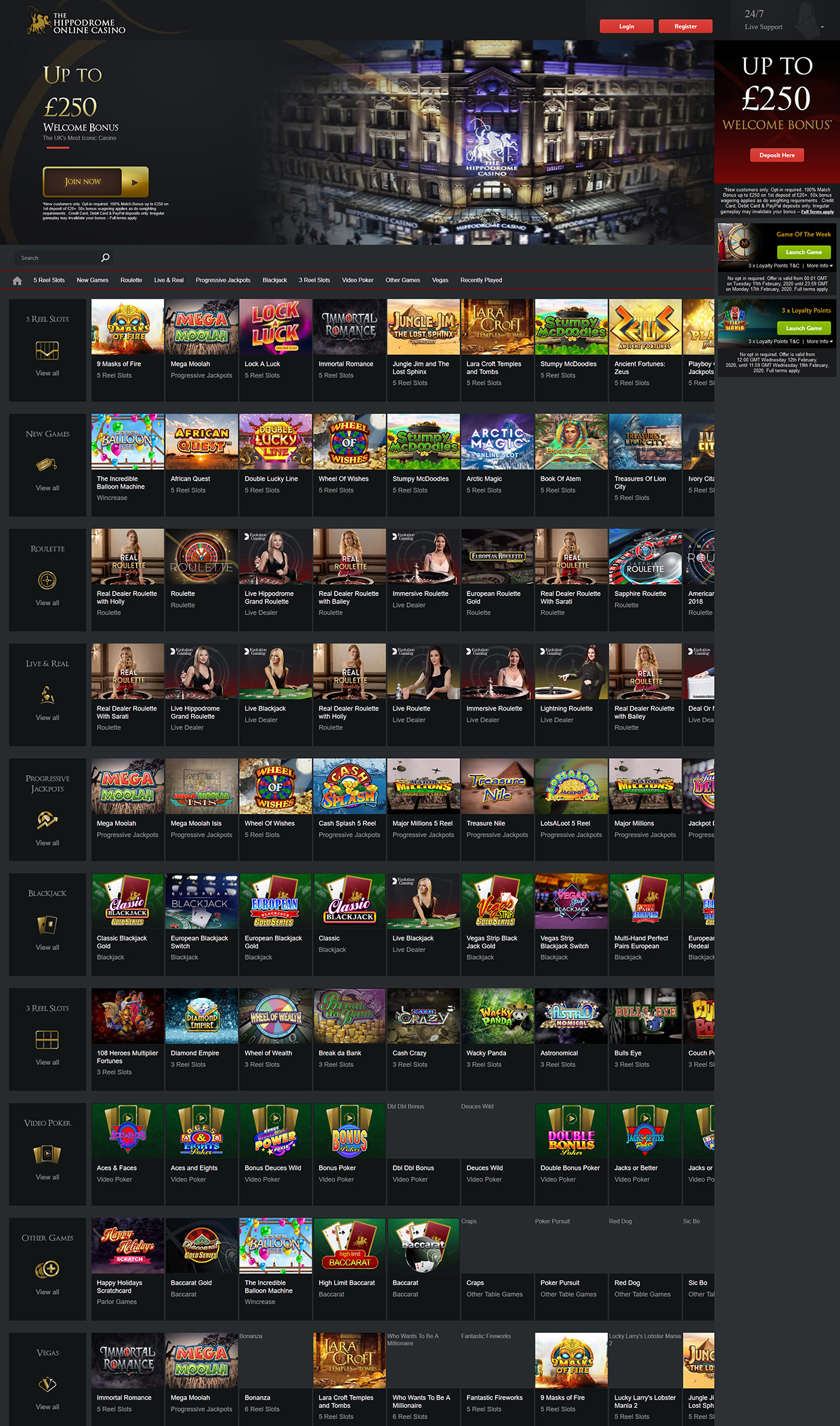 O cassino on-line revisado foi estabelecido sob o guarda-chuva do Hippodrom Casino London, que é considerado um dos maiores cassinos terrestres de Londres, seguindo apenas o Aspers Casino Westfield Stratford City. Isso também está entre os bares noturnos mais populares da capital que também recebe shows de teatro e oferece experiência ao vivo de pôquer. Sendo afiliado ao local de classe mundial, o cassino on-line do hipódromo não pode deixar de ser confiável, confiável e profissional. Os usuários da Portugal recebem uma infinidade de jogos emocionantes que podem ser apreciados em um aplicativo (requer download) ou em um navegador da web.Bônus até US € 250!