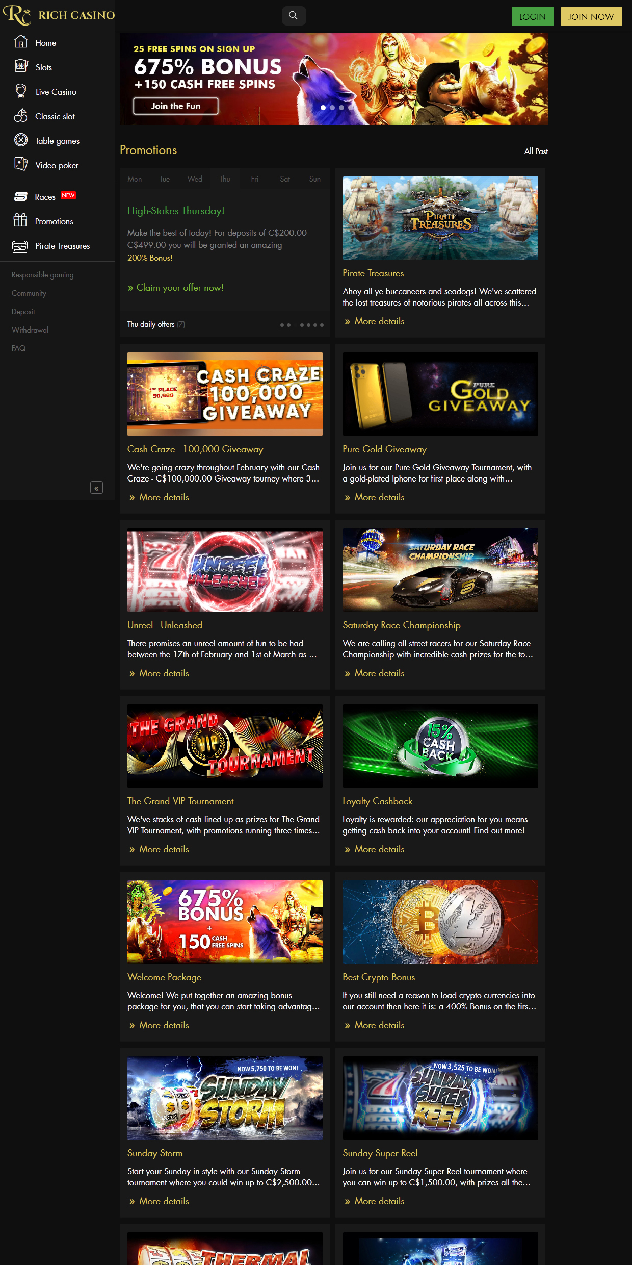 O Rich Casino tem um design elegante e atraente, com fundo preto sólido e bloco de menus à esquerda. Quando está na página inicial, um jogador pode ver links rápidos para os melhores jogos, Pokies recomendados e outro conteúdo do jogo. Na faixa superior, existem algumas promoções alternadas que destacam um bônus da moda ou um Pokie recentemente lançado. Em geral, o design da web visual do site do cassino é bom - não há nada extraordinário nisso, mas parece agradável aos olhos. Além disso, possui interface intuitiva e dois canais de suporte para resolver qualquer problema, se houver. Não há necessidade de baixar nada para jogar no Rich Casino, porque o site oferece uma experiência baseada em navegador com acesso instantâneo aos jogos. Os procedimentos de inscrição são padrão do setor e levam alguns minutos para serem concluídos.Ganhe até US € 12000!