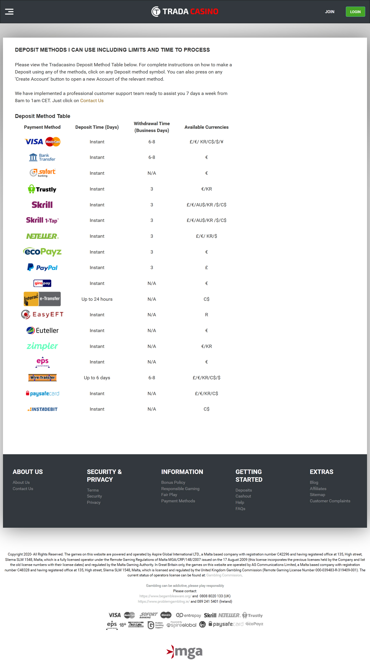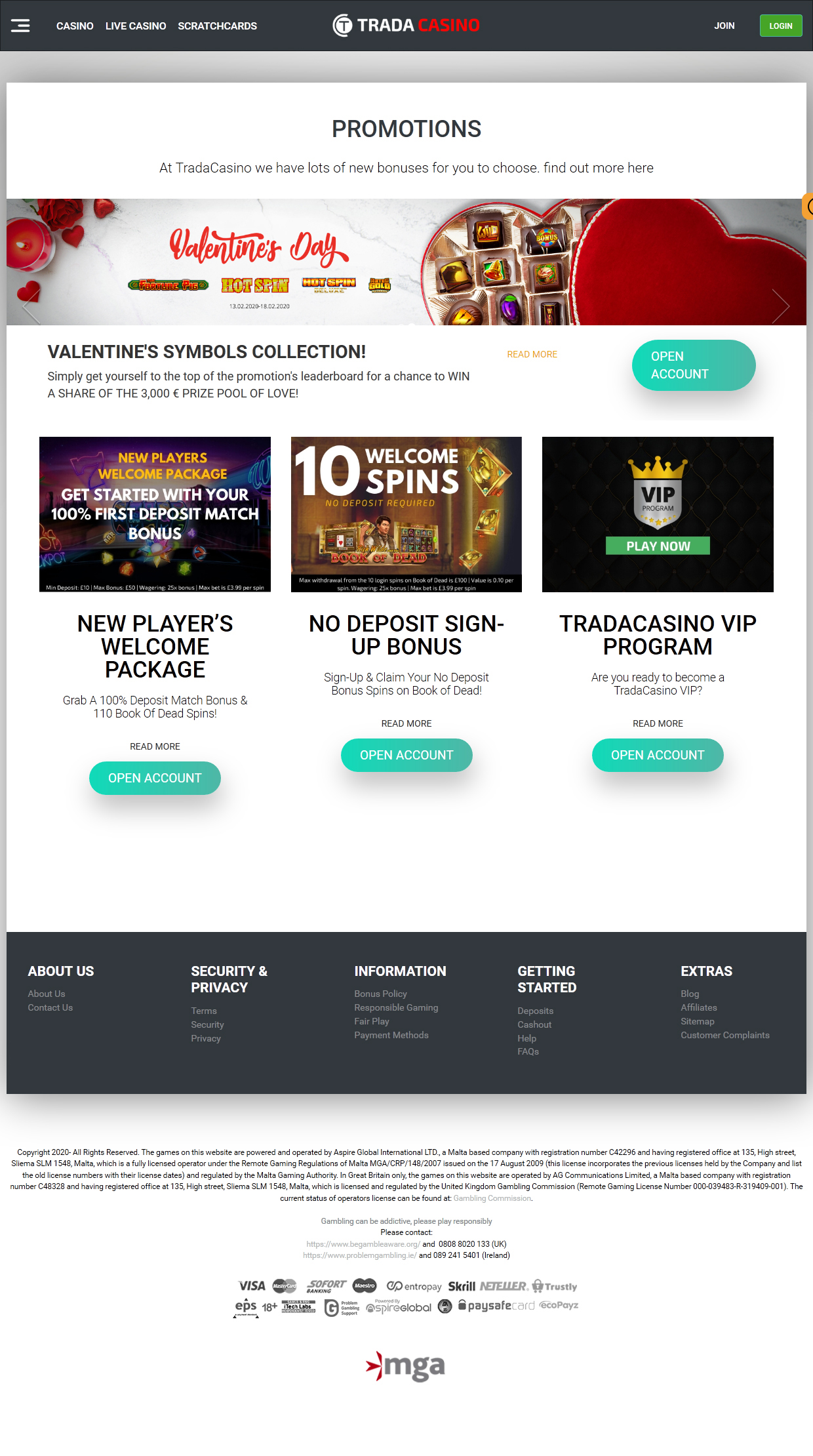 o cassino tradicional parece moderno e imponente. suas páginas da web são organizadas, com a maioria das entradas de menu sendo escondidas dentro de um botão especial no canto superior esquerdo. para se inscrever com o cassino, um usuário precisa clicar no botão de junção, preencher vários campos necessários e ver o email pessoal - esse procedimento não difere muito de seus pares. jogar em um local de jogo licenciado e legal é uma questão de segurança pessoal e o trada casino garante tranquilidade para seus jogadores, pois possui uma licença válida emitida pela malta gaming authority e pelo reino unido, sendo ambos órgãos reguladores respeitáveis.