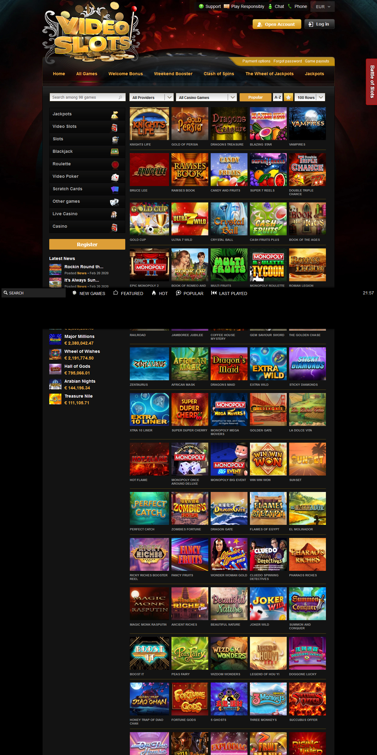como é mencionado acima, o cassino executa vários torneios a qualquer momento. sempre que se visita o cassino, ele pode prosseguir para o confronto de rodadas ou seção de batalha de slots para encontrar diferentes tipos de torneios. os torneios clash of spins funcionam simples: um evento dura uma hora durante o qual os participantes podem girar qualquer pokie e ganhar pontos especiais de torneios. os pontos são atribuídos a um ritmo flexível, por exemplo, 1 ponto para uma gree vitória (uma vitória de x15 vezes a aposta original), 3 pontos para uma mega vitória (x30 a aposta original), etc. os principais jogadores recebem giros gratuitos no um dos ganhos específicos do pokie e do fs vem sem requisitos de apostas.