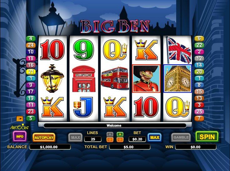 Big Ben é um Pokie atmosférico de cinco berros que faz um ótimo trabalho em encapsular os destinos e ícones marcantes da Grã-Bretanha. Tendo um jackpot de US € 125.000, o Pokie oferece um recurso de bônus lucrativo e até 25 rodadas gratuitas em um multiplicador X2.