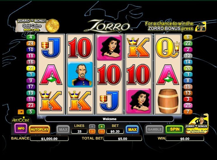 símbolos de cartão j, q, k e a vem com letras sobrepostas z, o e r. cada letra aparece apenas em seu carretel dedicado, por exemplo, z pode ser encontrado apenas no carretel 1, o aparece nos bobinas 2 e 5 e, portanto, assim sobre. o ponto é que a aparência de todas as cinco letras em seus rolos específicos soletra a palavra zorro. curiosamente, um recurso muito semelhante é usado no Panda selvagem, outro pokie do aristocrata. depois que a palavra foi escrita, você recebe um dos cinco recursos de bônus aleatoriamente:
