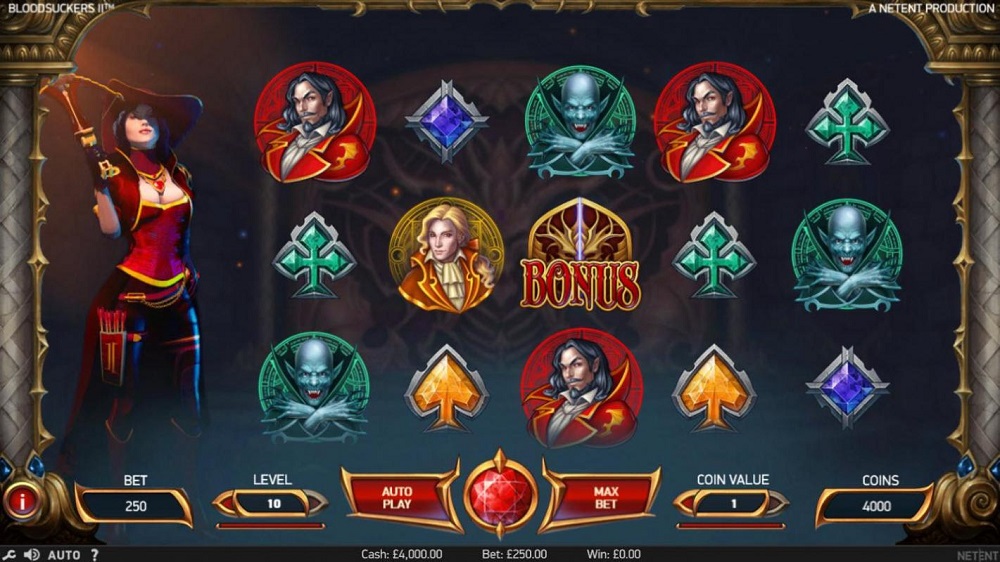 ao contrário da primeira edição do pokie (otários de sangue) produzida pela netent em 2009, o segundo jogo é mais dinâmico e repleto de recursos. seus gráficos seguem as tendências atuais como uma gree atenção aos detalhes e animações vívidas. em breves palavras, você ficará completamente satisfeito com o pokie se o aspecto gráfico for a primeira coisa que você prestar atenção ao jogar. otários de sangue possuem 25 linhas fixa e 5 rolos tradicionais com 3 linhas. uma vampira esportiva em vermelho, armada com uma besta, sempre fica à esquerda dos rolos, totalmente animada, e acrescenta muita diversão enquanto você toca.
