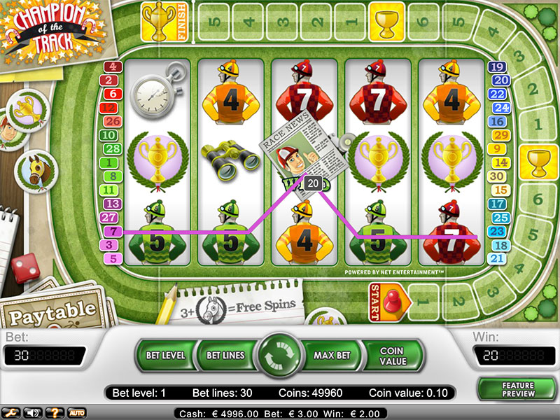 esse extraordinário pokie do líder da indústria netent combina a diversão de um pokie e um tema de cavalos manifestado em todo o design do pokie, especialmente uma pista de corrida ao redor dos bobinas. o pokie tem um recurso de spin gratuito único, onde você ganha etapas de carreira, progride ao longo da pista e agarra troféus. e se você conseguir três troféus, você entra em um impressionante jogo de bônus, onde competirá contra outros três cavalos e receberá prêmios generosos. o prêmio máximo de us € 20.000 será creditado ao seu saldo em atingir cinco jóqueis.