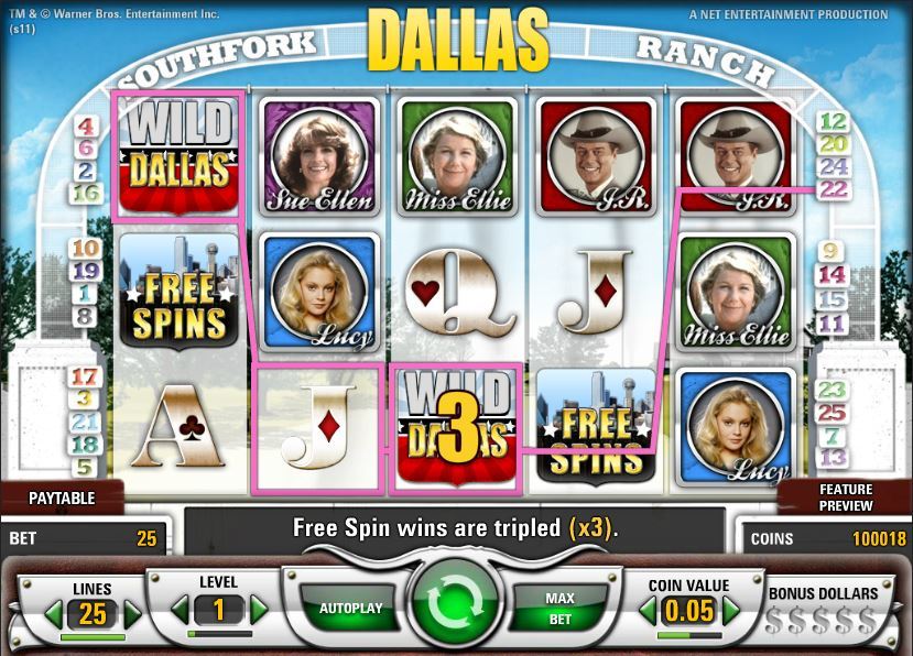 Dallas foi projetado para lembrar os jogadores da série porque metade de seus símbolos exibe os principais atores, incluindo lucy, jock, miss ellie, sue ellen e j.r. ewing. os outros símbolos são j, q, k e a, que são símbolos de baixo escalão que pagam x3 a x100 por cinco do tipo. os bobinas semi-transparentes estão contra a paisagem do sul da rancho, onde a maioria dos episódios foi filmada. quando se trata de outros aspectos de design, o pokie tem a mesma interface e o sistema de payline, que muitos outros jogos de 5 ramos. para obter uma vitória, três, quatro ou cinco símbolos semelhantes devem se alinhar em uma linha de pagamento ativa da esquerda para a direita.